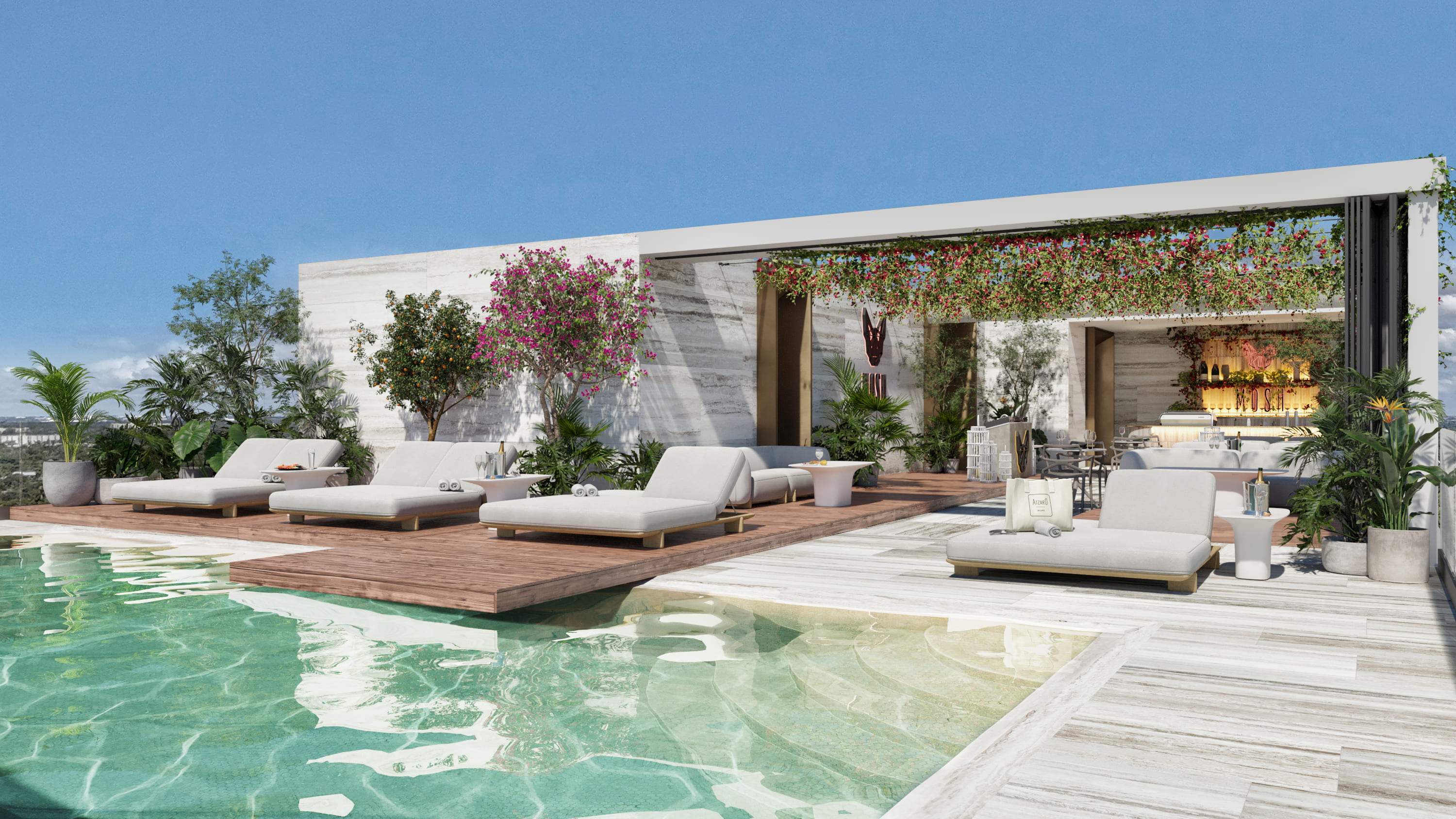 Interior design for a new development by the renowned Atzaró brand, adapting its identity to a new urban context in the United States. The project was developed in compliance with local codes and regulations, without losing the Mediterranean and natural essence characteristic of the firm.